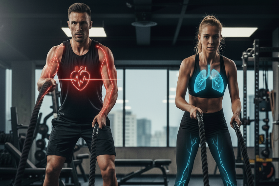 When you train with the right intensity — like with battle rope intervals — your body demands more oxygen than usual.