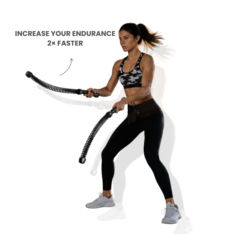 Each handle uses weighted resistance motion technology that mimics the feel of real battle ropes — but in a compact, silent, and portable design.