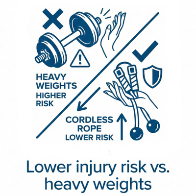 Quick, rhythmic moves activate your arms, shoulders, abs, and back for a fast full-body burn — without anchors or bulky equipment. The cordless design makes it easy to train powerfully in small spaces while staying gentle on your joints.
